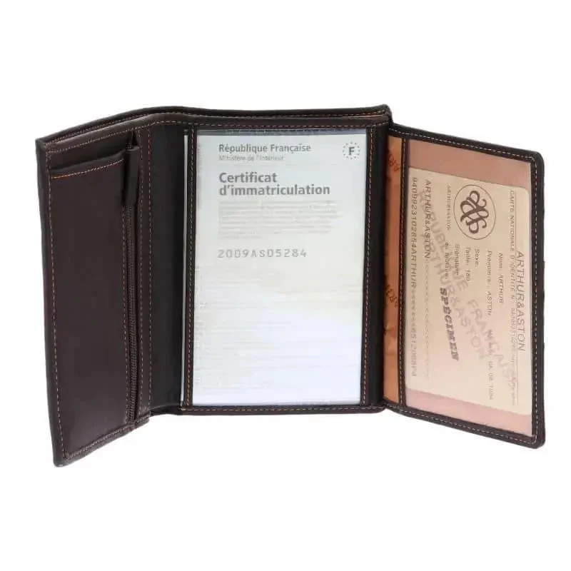 Profitez d’une sĂ©curitĂ© sans faille et d’un style inimitable avec le portefeuille Arthur & Aston. ConfectionnĂ© en cuir de vachette gras de haute qualitĂ© et Ă©quipĂ© de la technologie RFID anti-vol des donnĂ©es bancaires, ce portefeuille offre 7 emplacements Ă carte, un dĂ©pliant plastique mobile pour certificat d’immatriculation, une poche plate et un compartiment billet et monnaie zippĂ©s. DĂ©couvrez un luxe intemporel avec Melisac.fr.