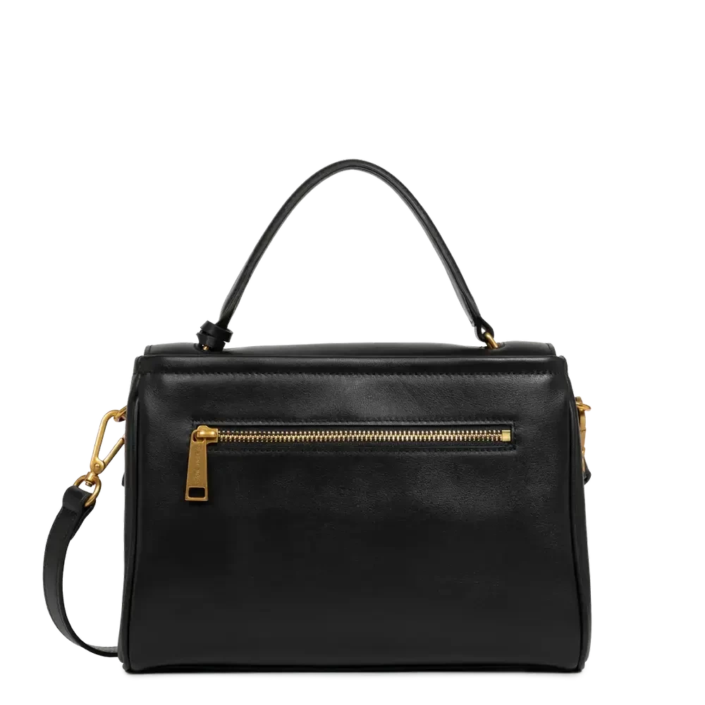 Porté : Main, épaule ou travers (anses courtes non réglables + bandoulière ajustable de 91 cm à 111 cm)