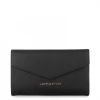 Cet accessoire polyvalent offre un intérieur bien organisé, comprenant un volet, un porte-monnaie zippé, trois poches plates (dont une transparente), six emplacements pour cartes, un espace dédié au chéquier et un compartiment pour stylo. Ses finitions argent brillant et son format raffiné le rendent idéal pour une utilisation quotidienne élégante.
