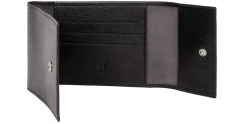 Parfait pour organiser vos essentiels, il dispose de deux volets, une poche plate, trois emplacements pour cartes et un espace dédié au chéquier. Sa fermeture à rabat à pression garantit une sécurité optimale, tandis que les finitions argent brillant ajoutent une touche de sophistication à cet accessoire intemporel.